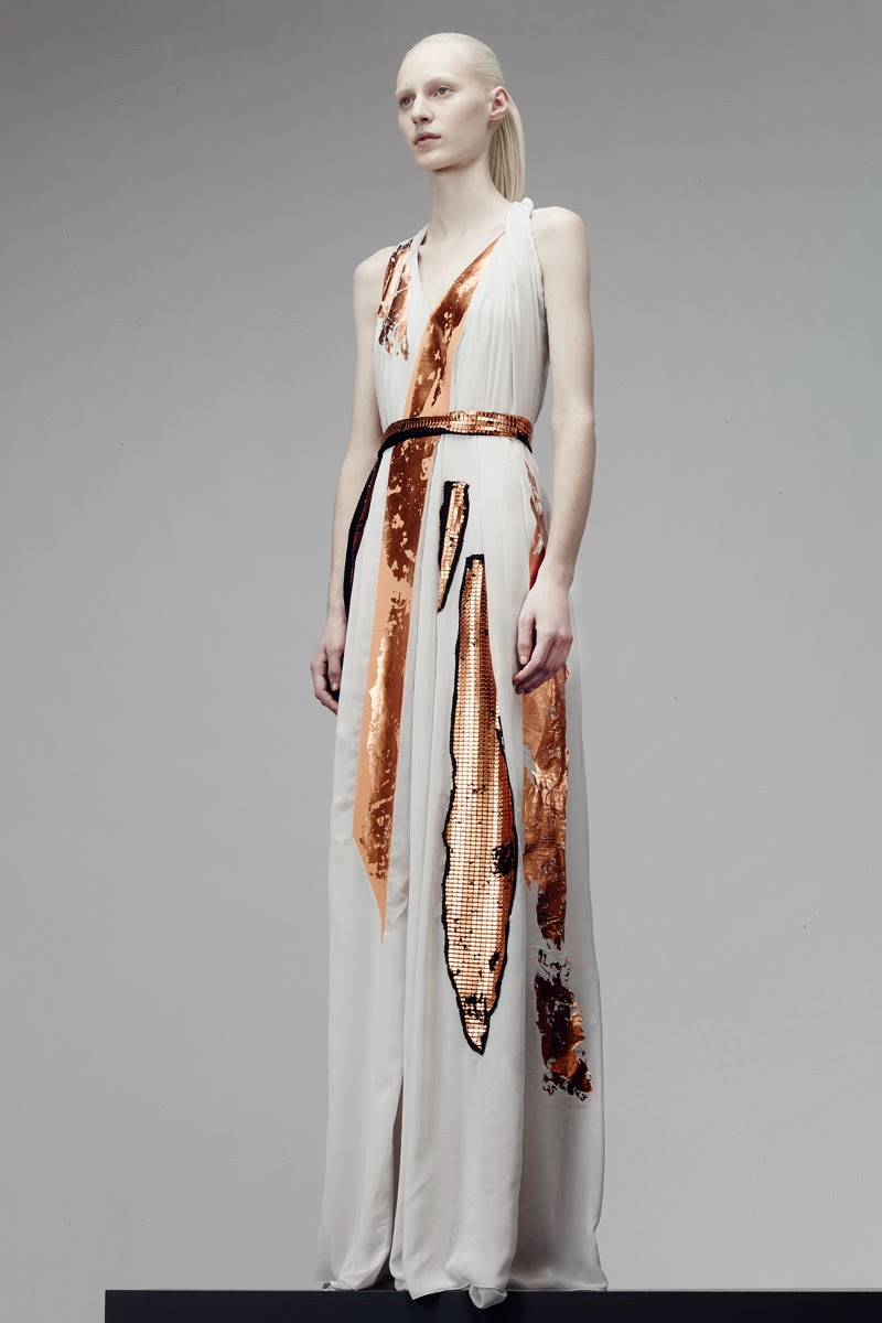 Um dos aspetos frequentes nas colecções pre fall é a facilidade, sem as componentes extras que as passerelles precisam, as propostas aqui apresentadas podem sair logo para as ruas. A colecção Bottega Veneta é um bom exemplo disso trazendo, também, uma versatilidade de ideias para todas as ocasiões, unidas pelos traços metálicos, pela elegância e sofisticação, preenchidas de bons sapatos e deslumbrantes malas.
